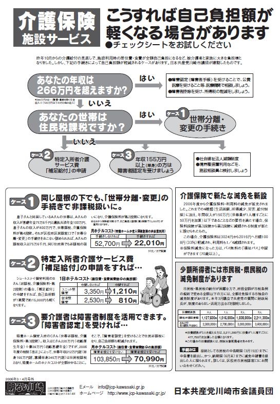 介護保険施設サービス チェックシート「こうすれば自己負担額が軽くなる場合があります」